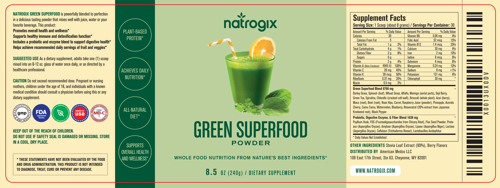 Dietary supplement label – Advertising / FDA compliance / edited copy